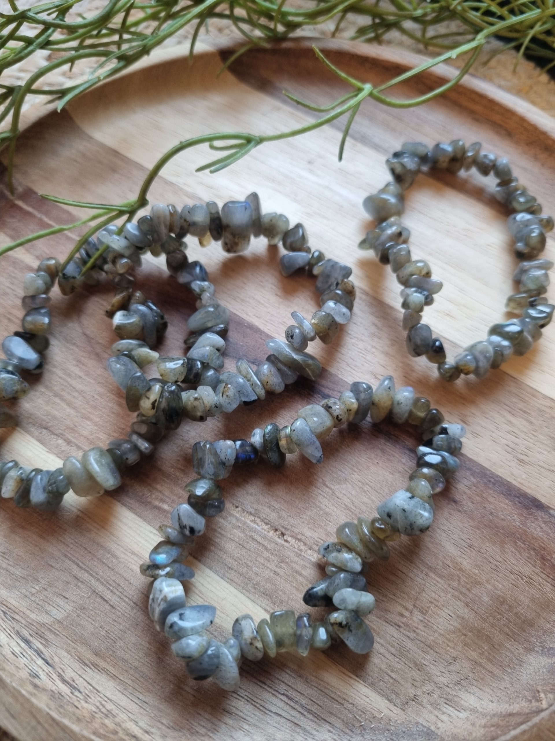 Labradoriet opent het derde oogchakra en stimuleert intuïtie, helder denken en spirituele groei. Ze biedt bescherming tegen negatieve energieën en versterkt je energiefrequentie. Haar kalmerende en balancerende eigenschappen helpen om emotionele spanning los te laten en je te verbinden met je dieper innerlijk.