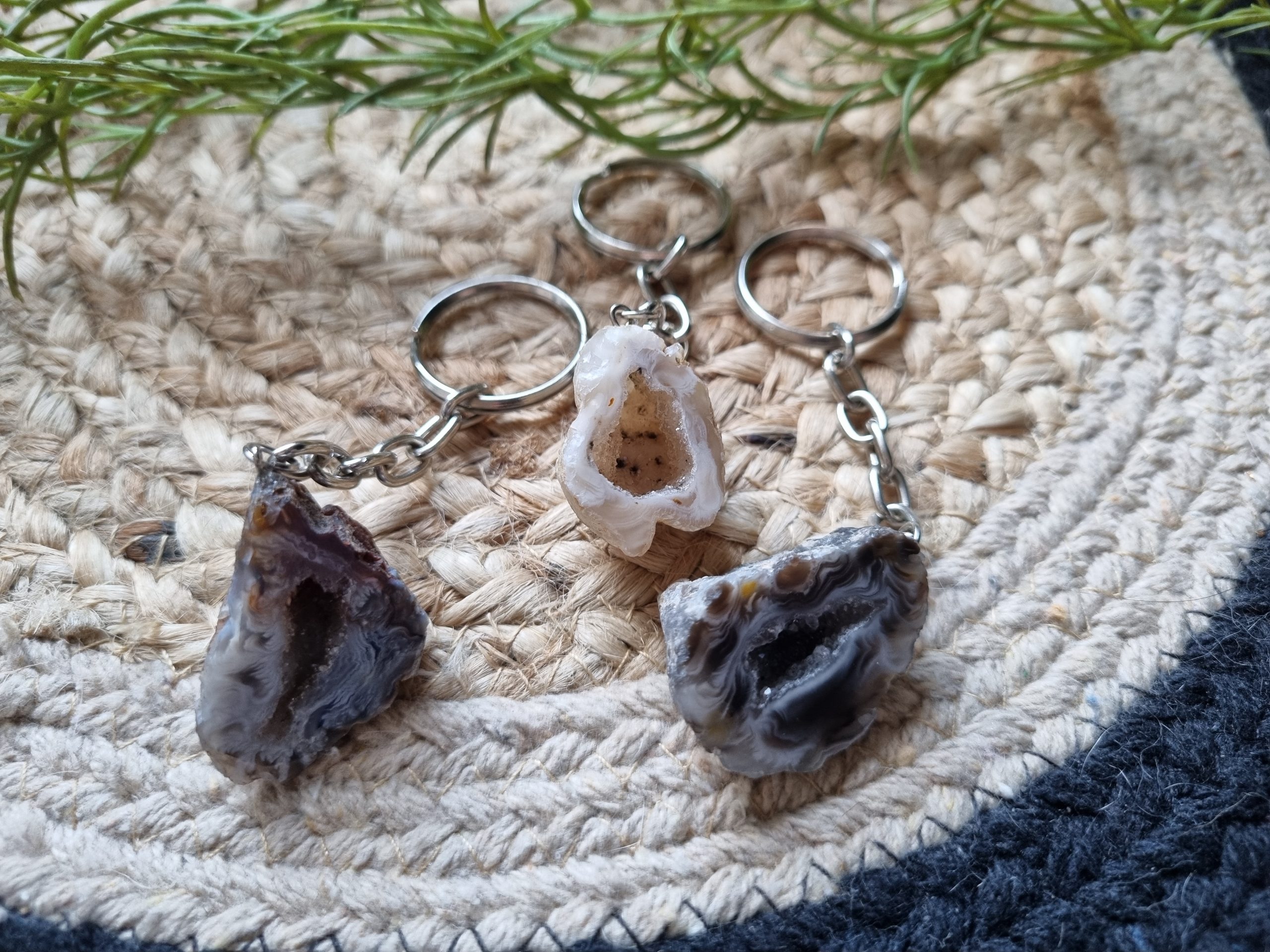 Kies eenvoudig jouw agaat geode sleutelhanger.