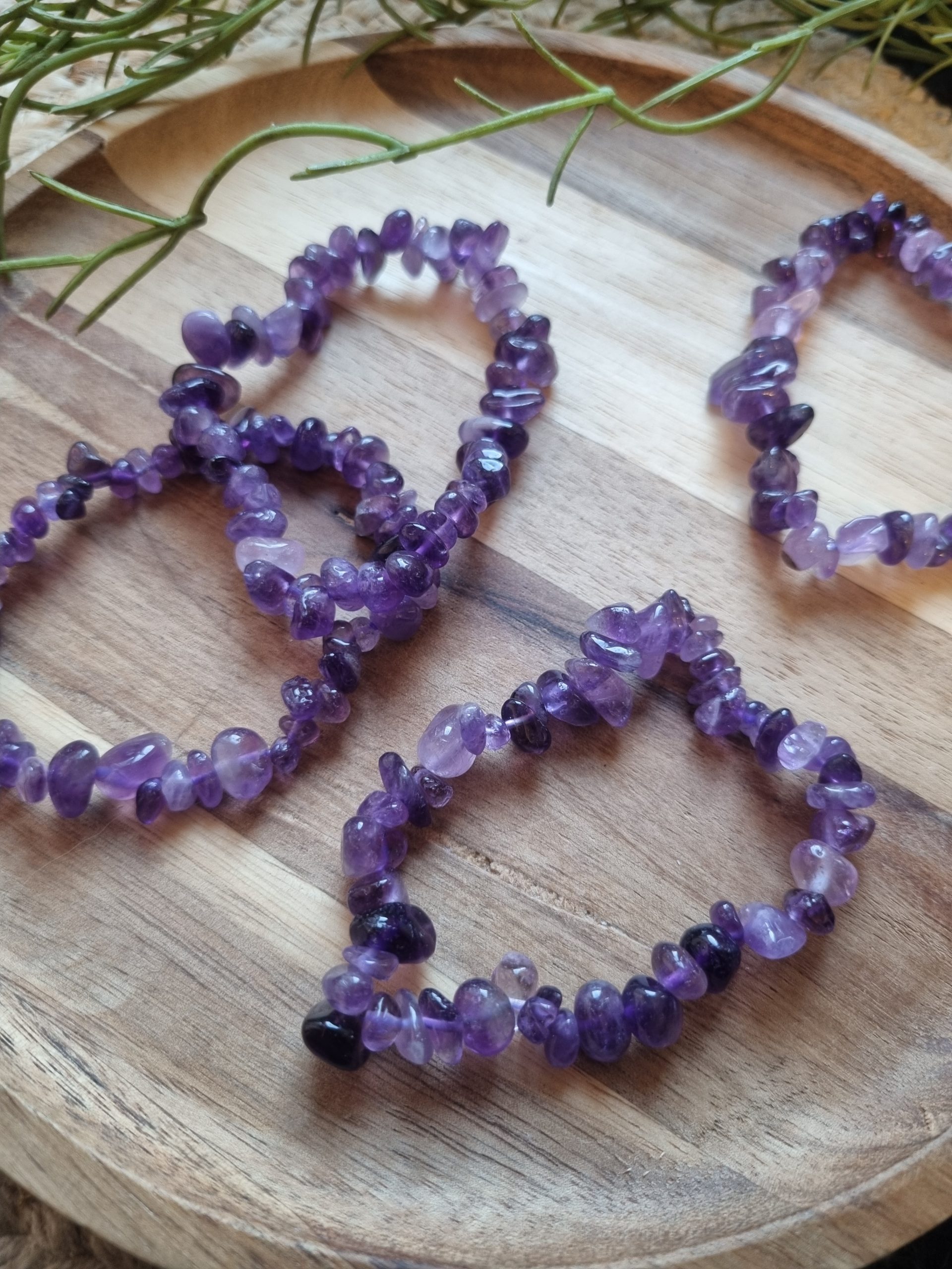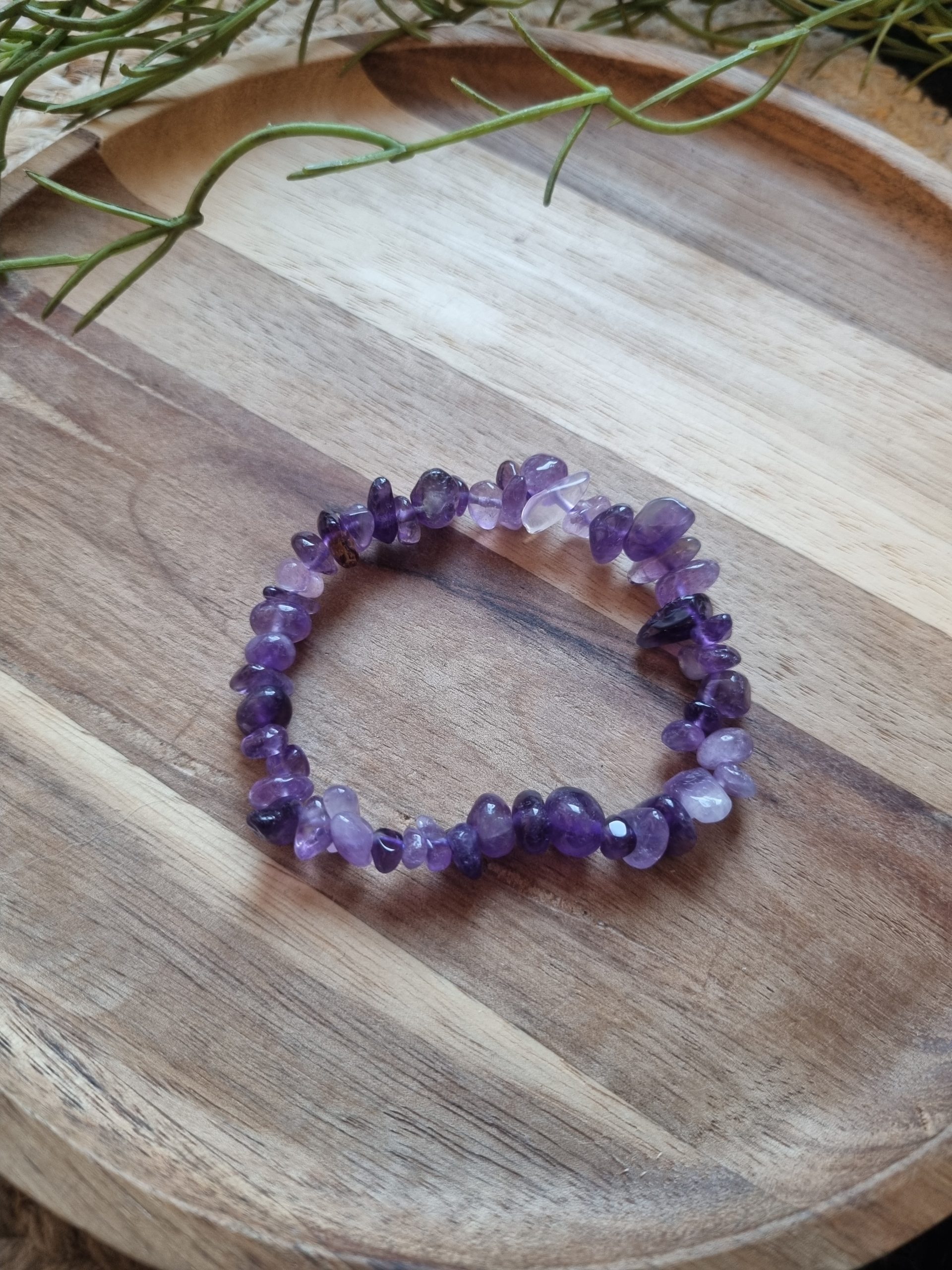 Draag de amethist splitarmband en laat de helende kracht van deze steen je begeleiden op je spirituele reis en helpen bij het vinden van innerlijke balans en rust.