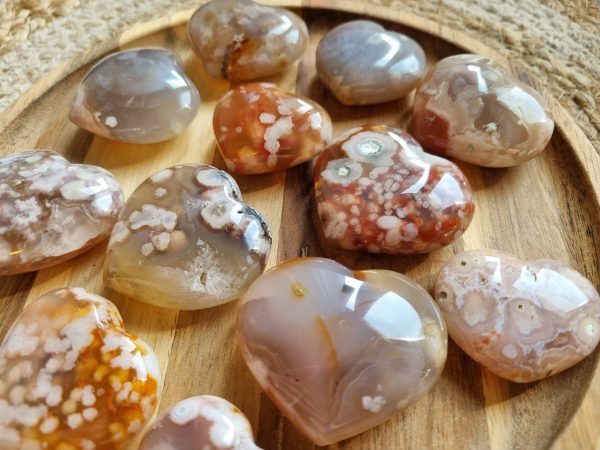 Flower agaat staat bekend om zijn vermogen om liefde te versterken en symboliseert de korte, mooie bloei van kersenbloesems.