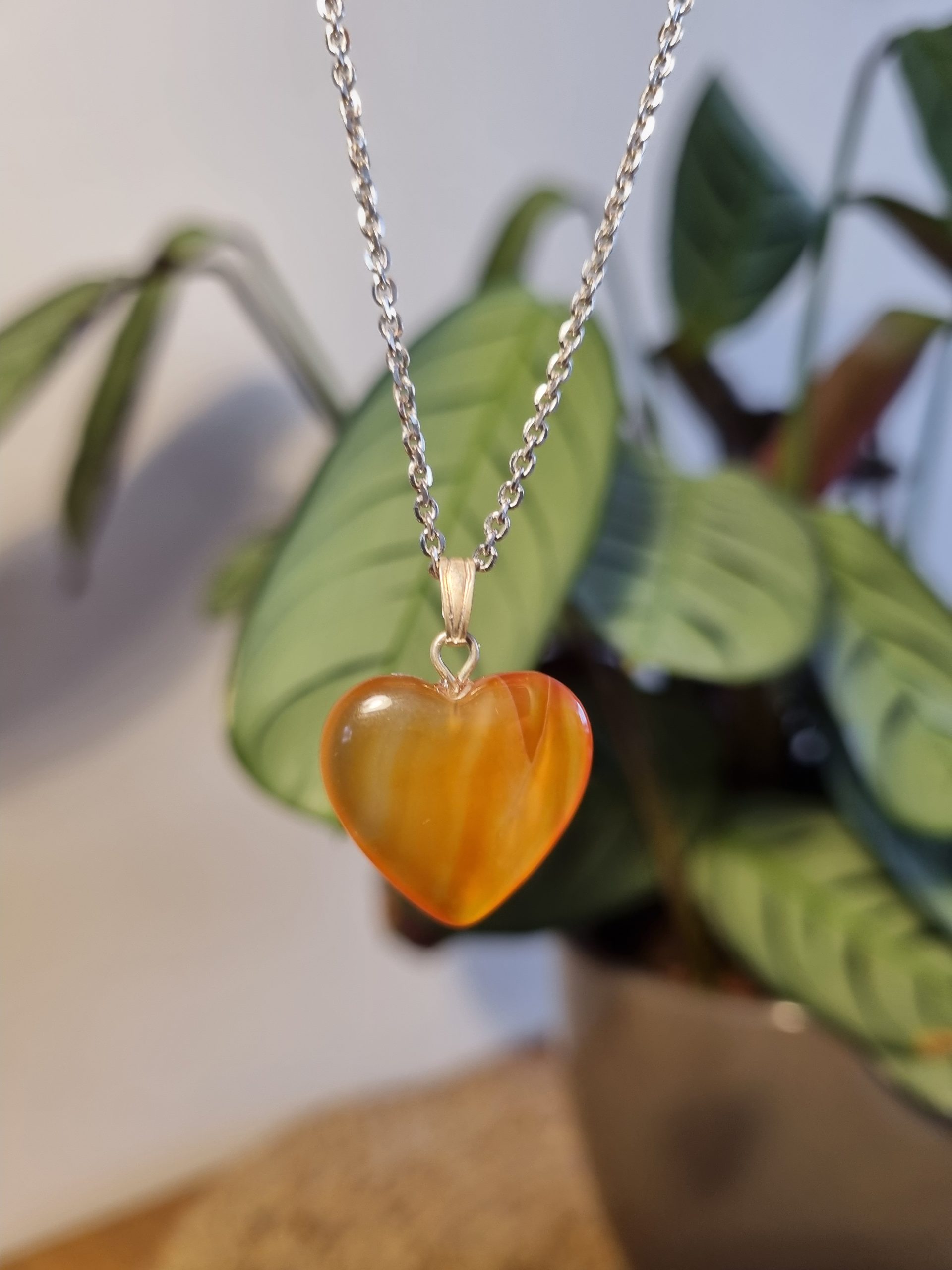 Carneool, met zijn warme oranje tot rode tinten, staat bekend om zijn stimulerende en motiverende kracht. Dit mineraal helpt bij het vergroten van zelfvertrouwen en daadkracht.