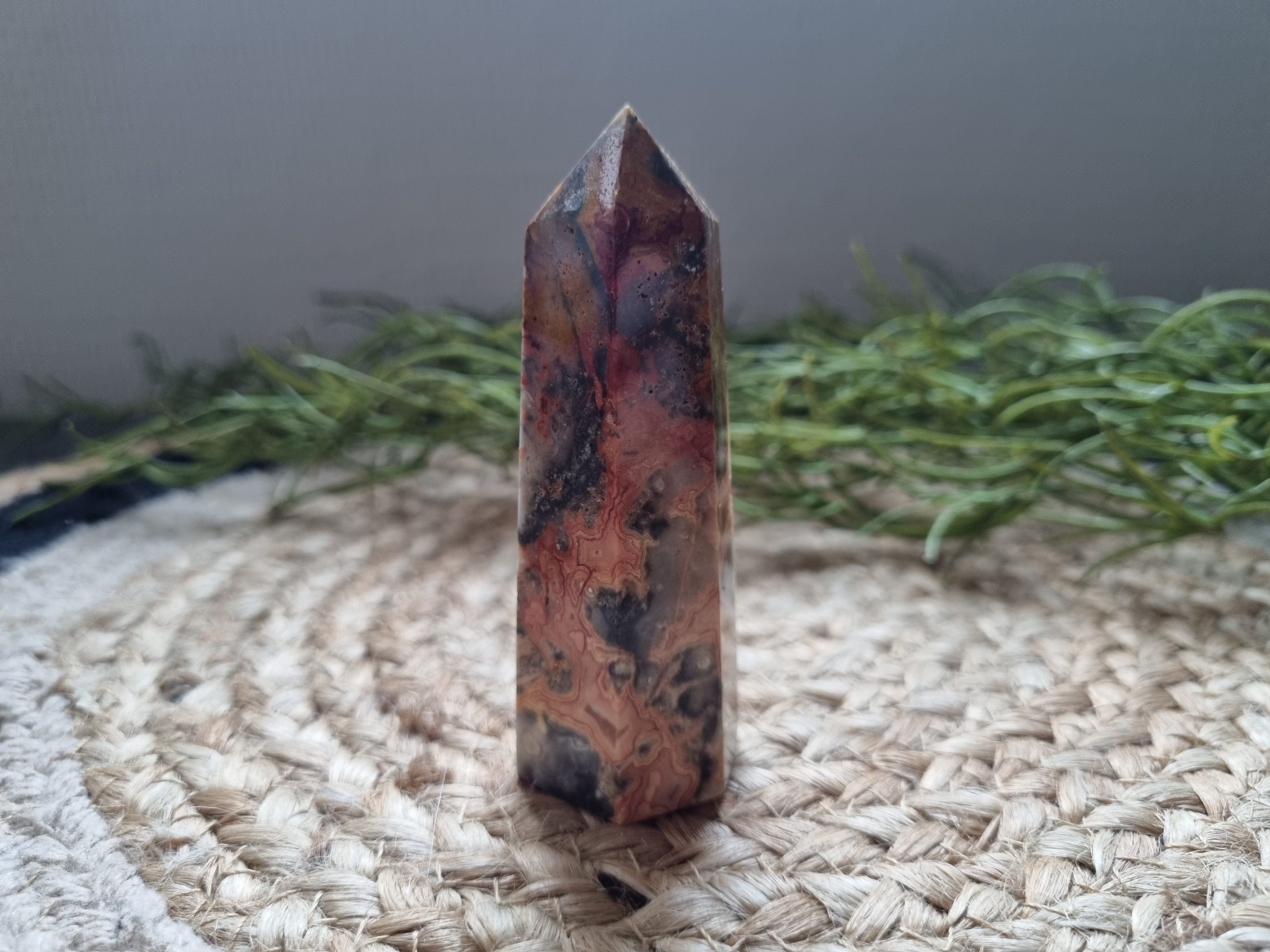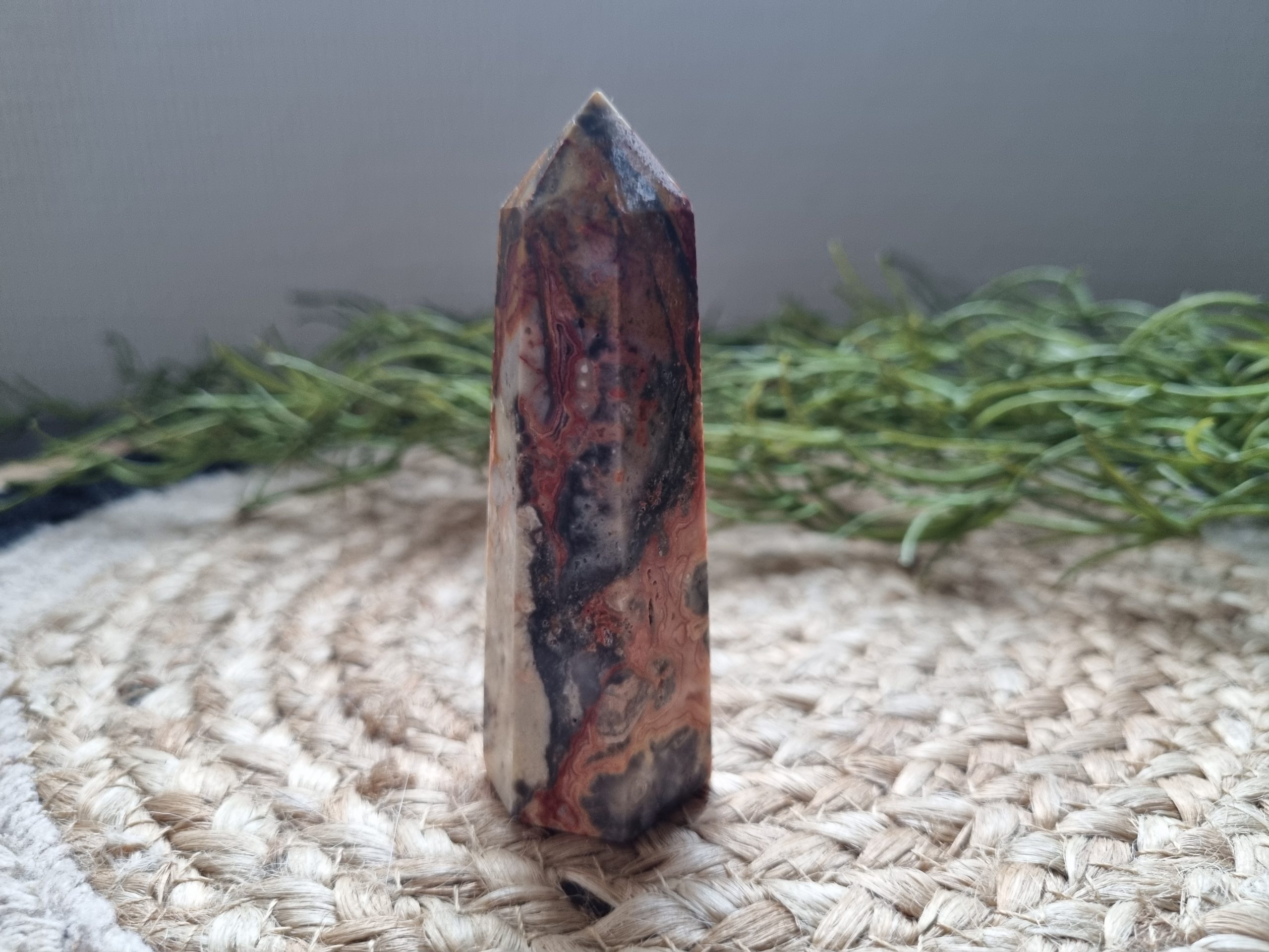Crazy lace agaat staat bekend om haar levendige patronen. Naast haar prachtige uiterlijk beschikt crazy lace agaat over spirituele eigenschappen. Ze biedt aardende en stabiliserende energieën die innerlijke rust en balans bevorderen. De steen helpt negatieve energieën te neutraliseren en creëert een sfeer van vreugde en positiviteit.