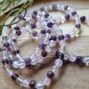Amethist, de tweede steen, wordt geassocieerd met spiritualiteit, intuïtie en innerlijke rust. Ze helpt een diepere verbinding met het hogere zelf te maken en ondersteunt meditatie en spirituele groei.