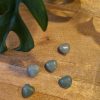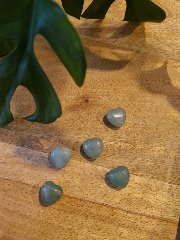 Doorboorde groene aventurijn harthanger van ongeveer 1,5 cm.