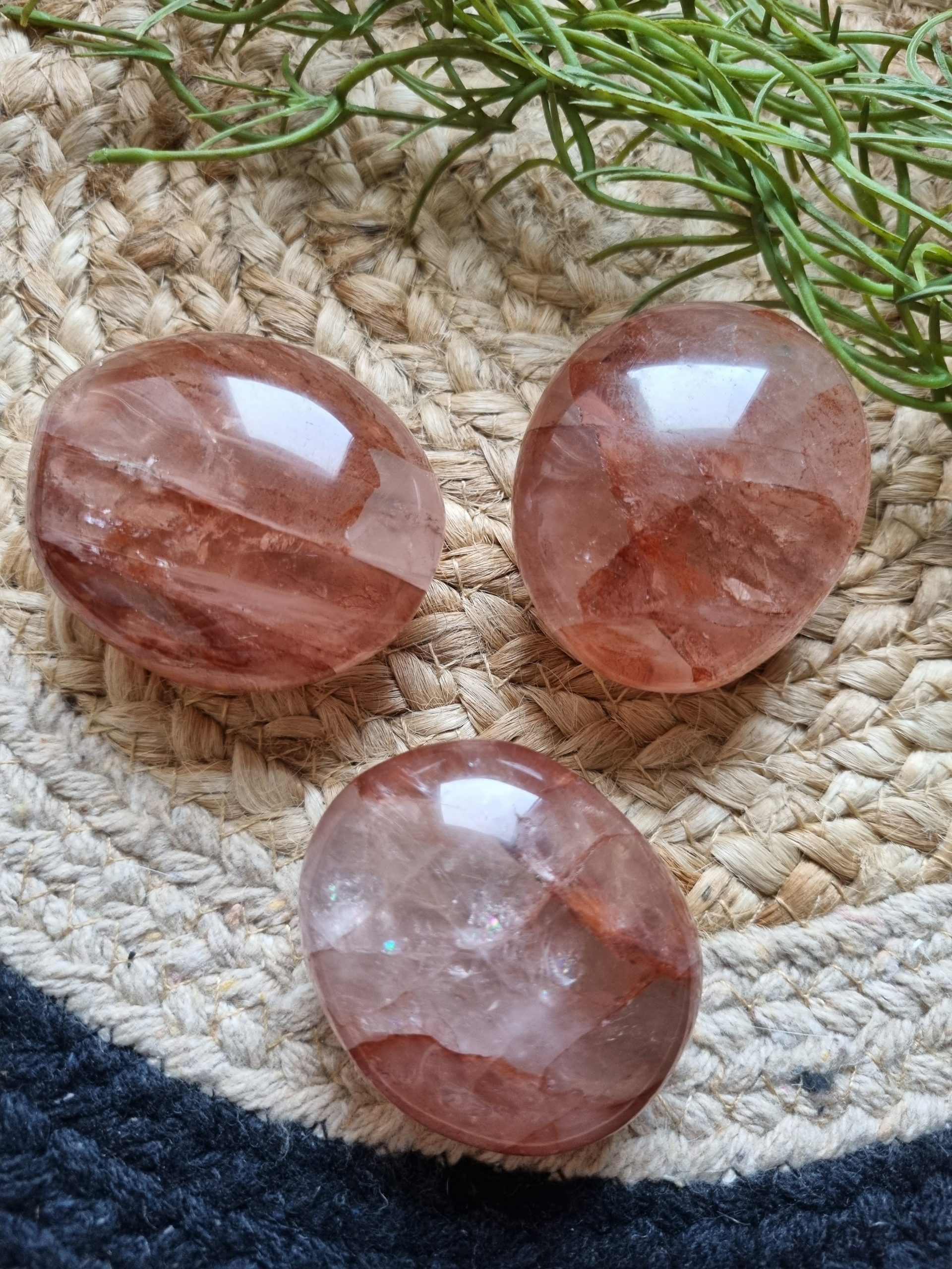 Deze indrukwekkende jumbo hematoïde kwarts stenen combineren de heldere kracht van kwarts met de dieprode, aardende energie van hematiet. De natuurlijke insluitsels en het rijke kleurenspel zorgen voor een prachtig en krachtig kristal dat haar energie op een natuurlijke wijze uitstraalt.