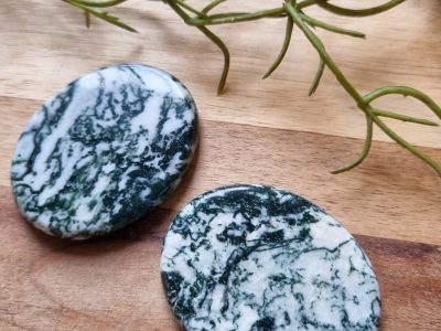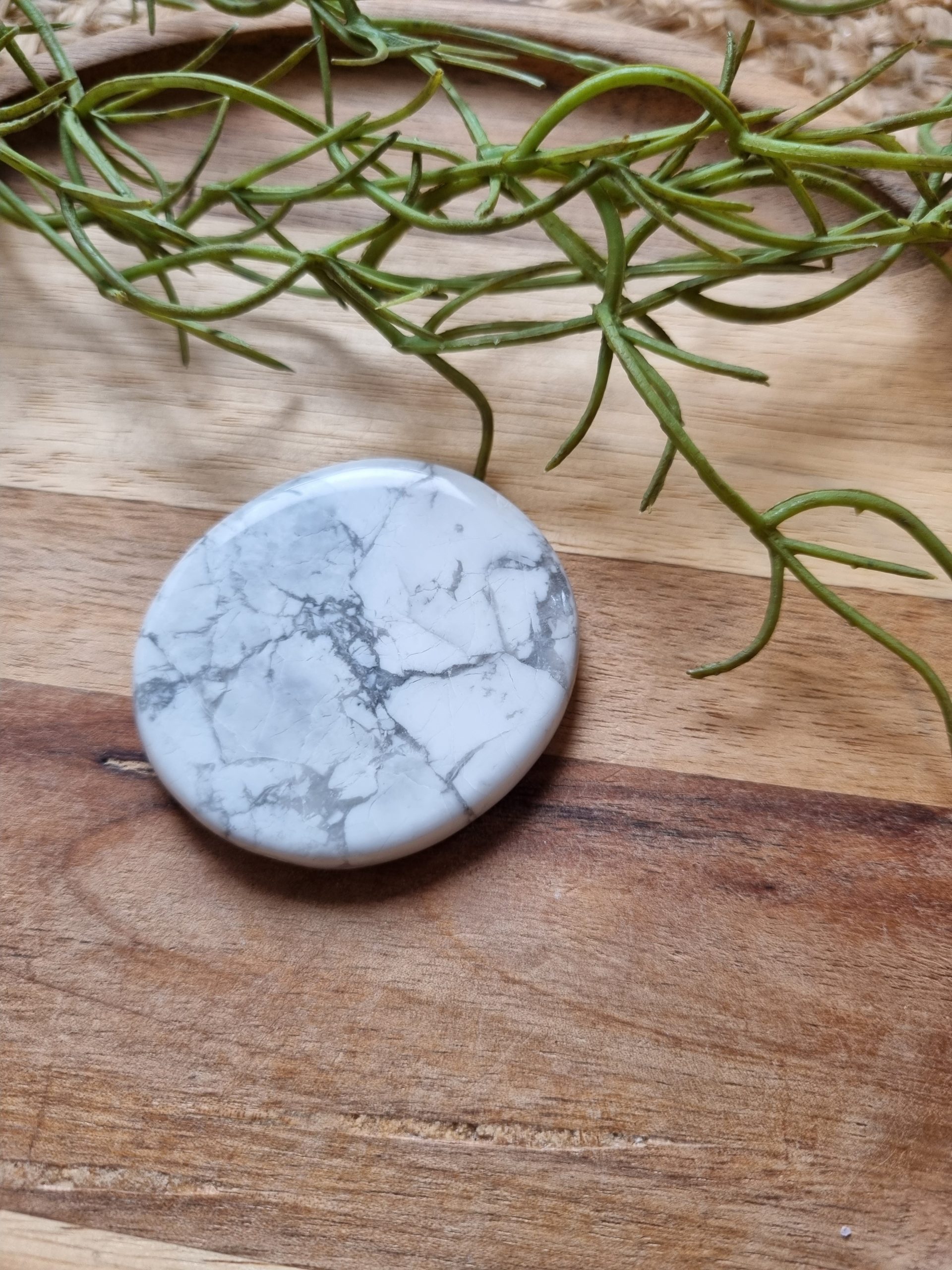 Deze prachtige, gepolijste howliet zakstenen stralen een rustgevende energie uit. Meestal wit van kleur met grijze aders, helpen ze je innerlijke rust te bevorderen en stress, angst en spanningen te verminderen.