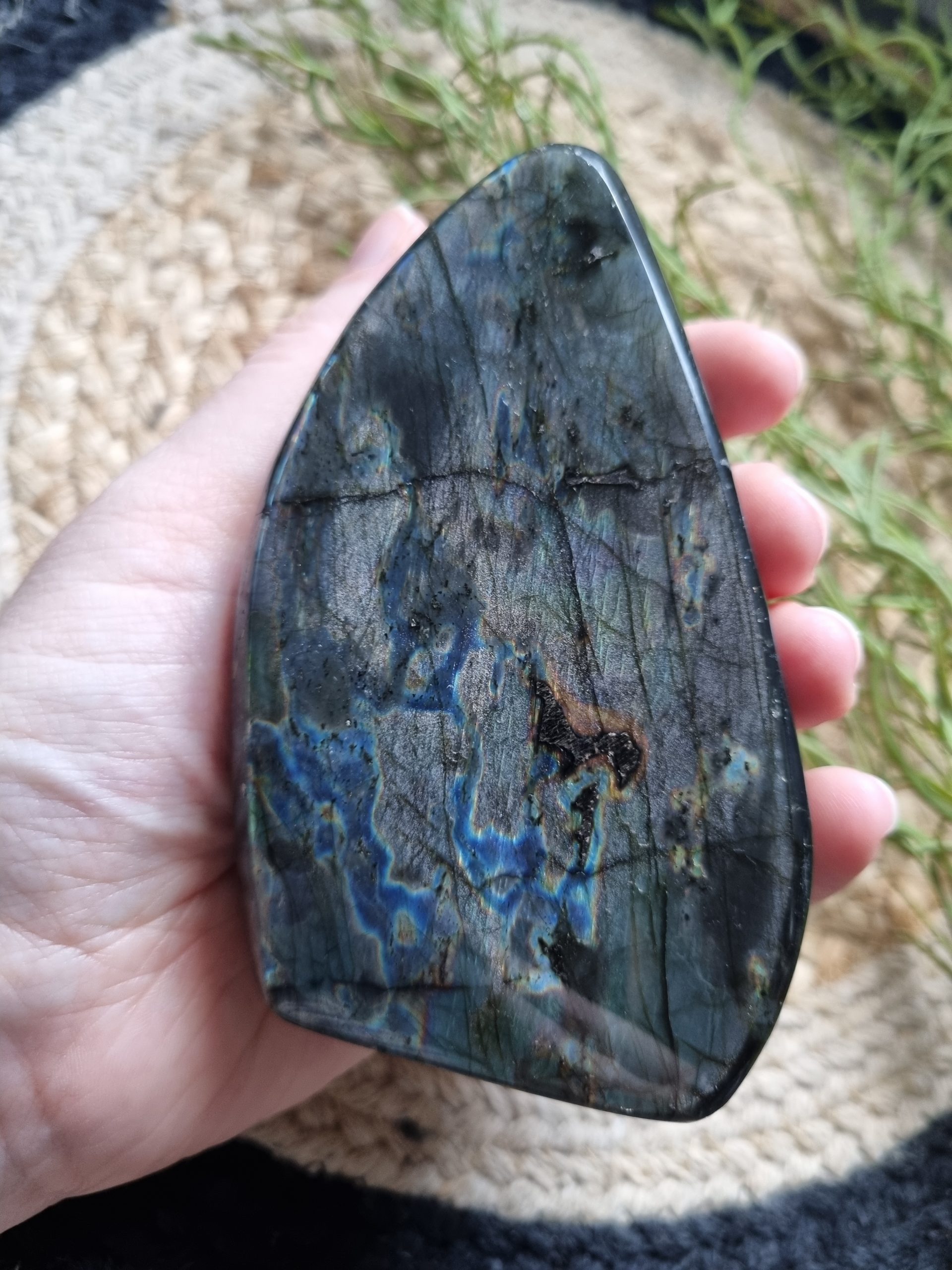 Labradoriet sculptuur met een blauwe glans, die een magnetische uitstraling en een krachtige, mystieke energie verspreidt.