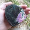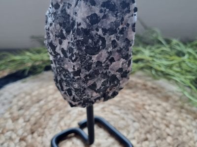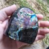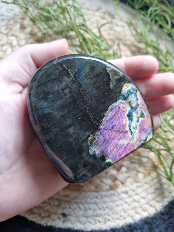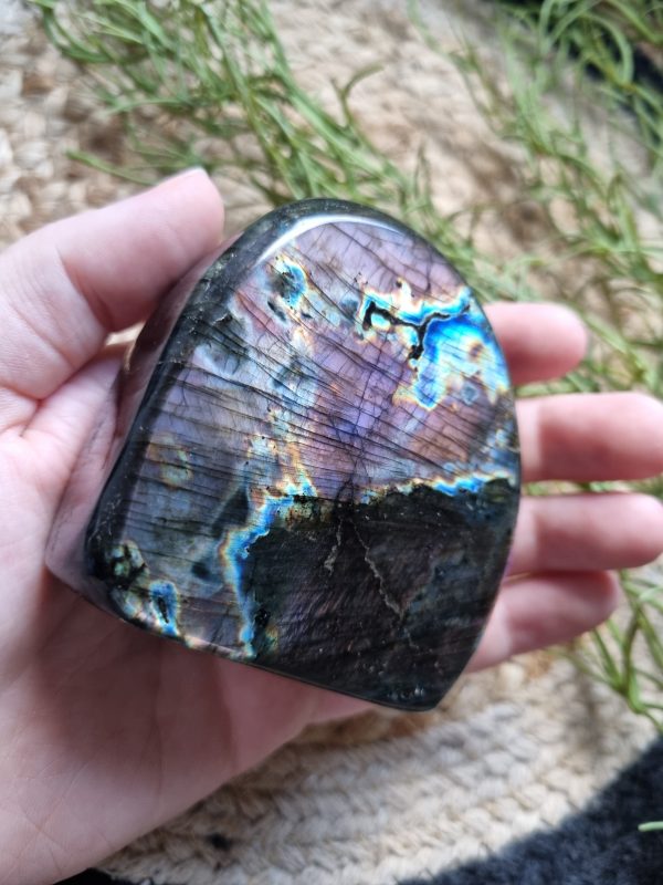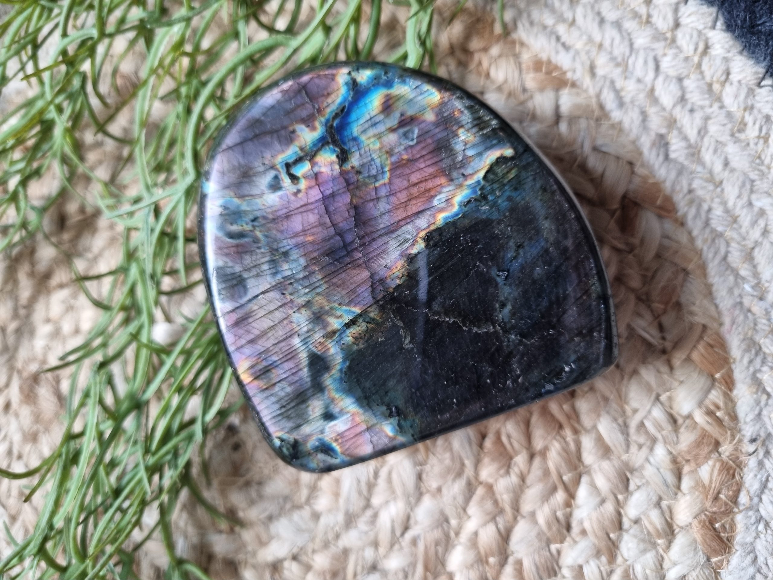 Deze labradoriet brengt de opvallende paarse en blauwe glans op een wonderlijke wijze tot leven.