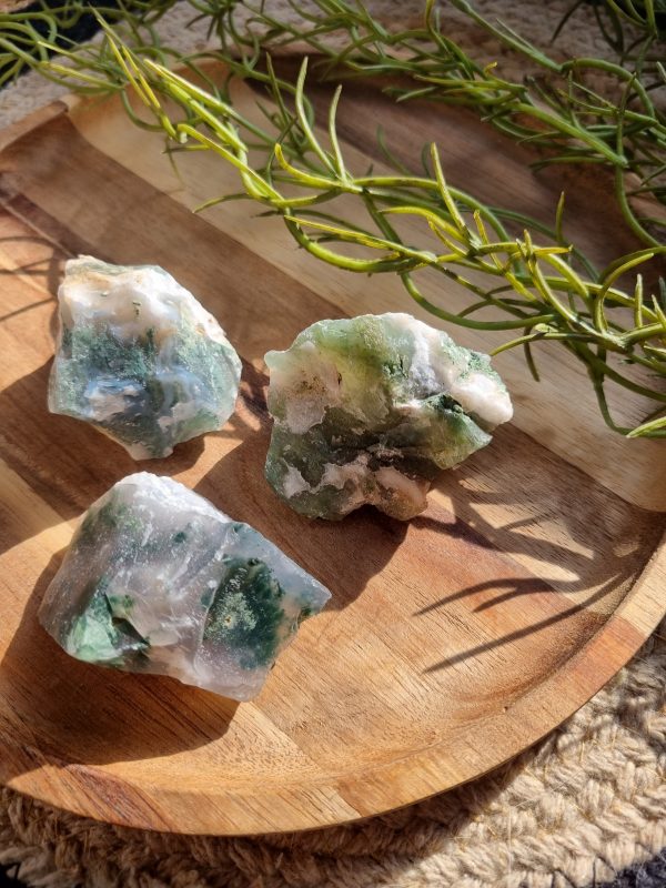 Verrijk je kristallenverzameling met de natuurlijke pracht van ruwe mosagaat. Deze steen, met zijn levendige groentinten en intrigerende “mosachtige” patronen die lijken op een weelderig boslandschap, is uniek in haar soort.