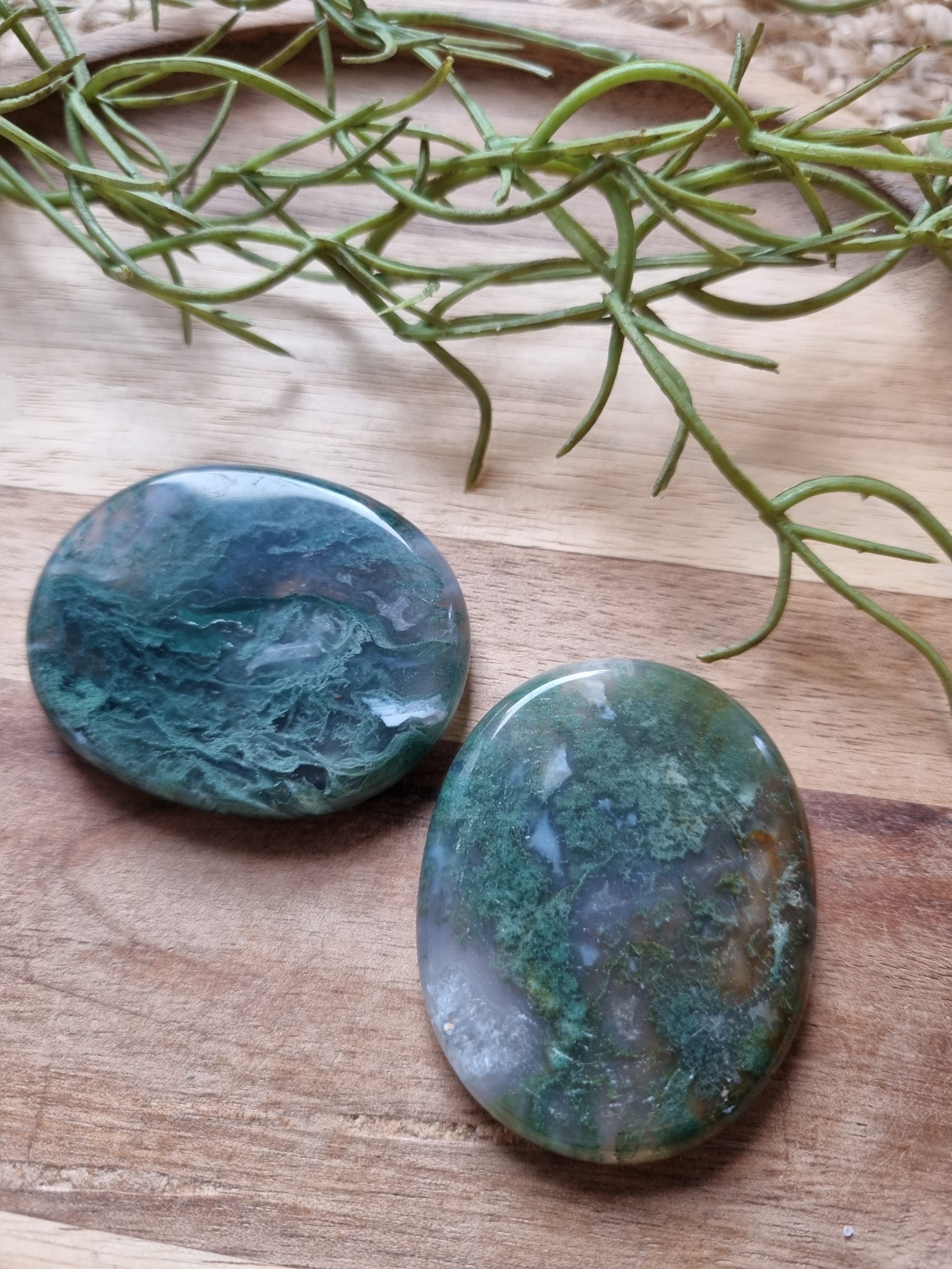 Mosagaat staat bekend om haar aardende en stabiliserende eigenschappen. Ze helpt bij het bevorderen van balans en harmonie op fysiek, emotioneel en spiritueel niveau. Daarnaast wordt ze geassocieerd met vernieuwing en groei, en ondersteunt ze tijden van transformatie en persoonlijke ontwikkeling.