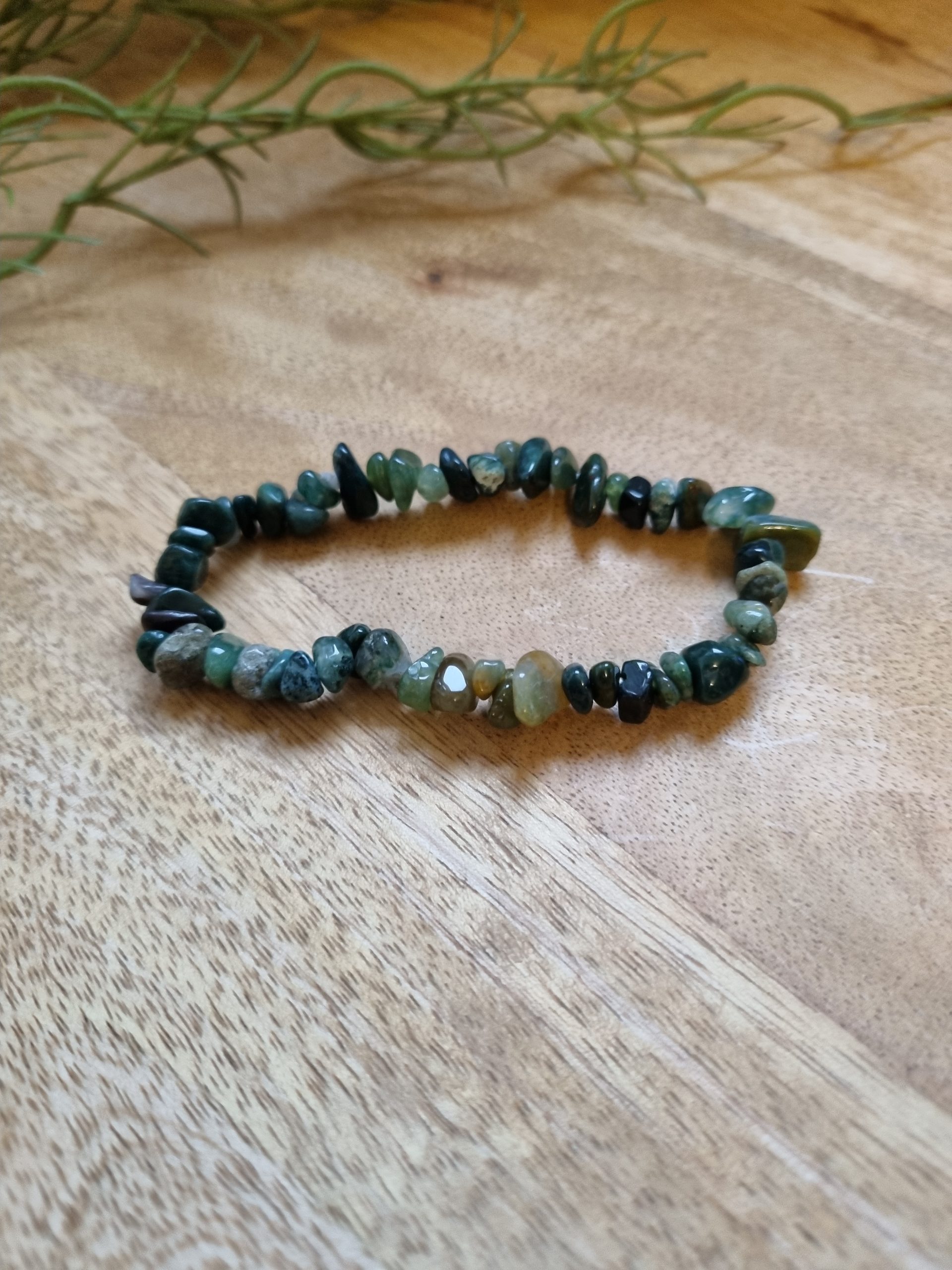 Deze mosagaat armband ondersteunt je bij het kalmeren van emoties en het versterken van je verbinding met de natuur. Draag haar als een natuurlijke metgezel en ervaar een rustgevende, aardende energie die je helpt de drukte van het dagelijks leven los te laten en innerlijke sereniteit te vinden.