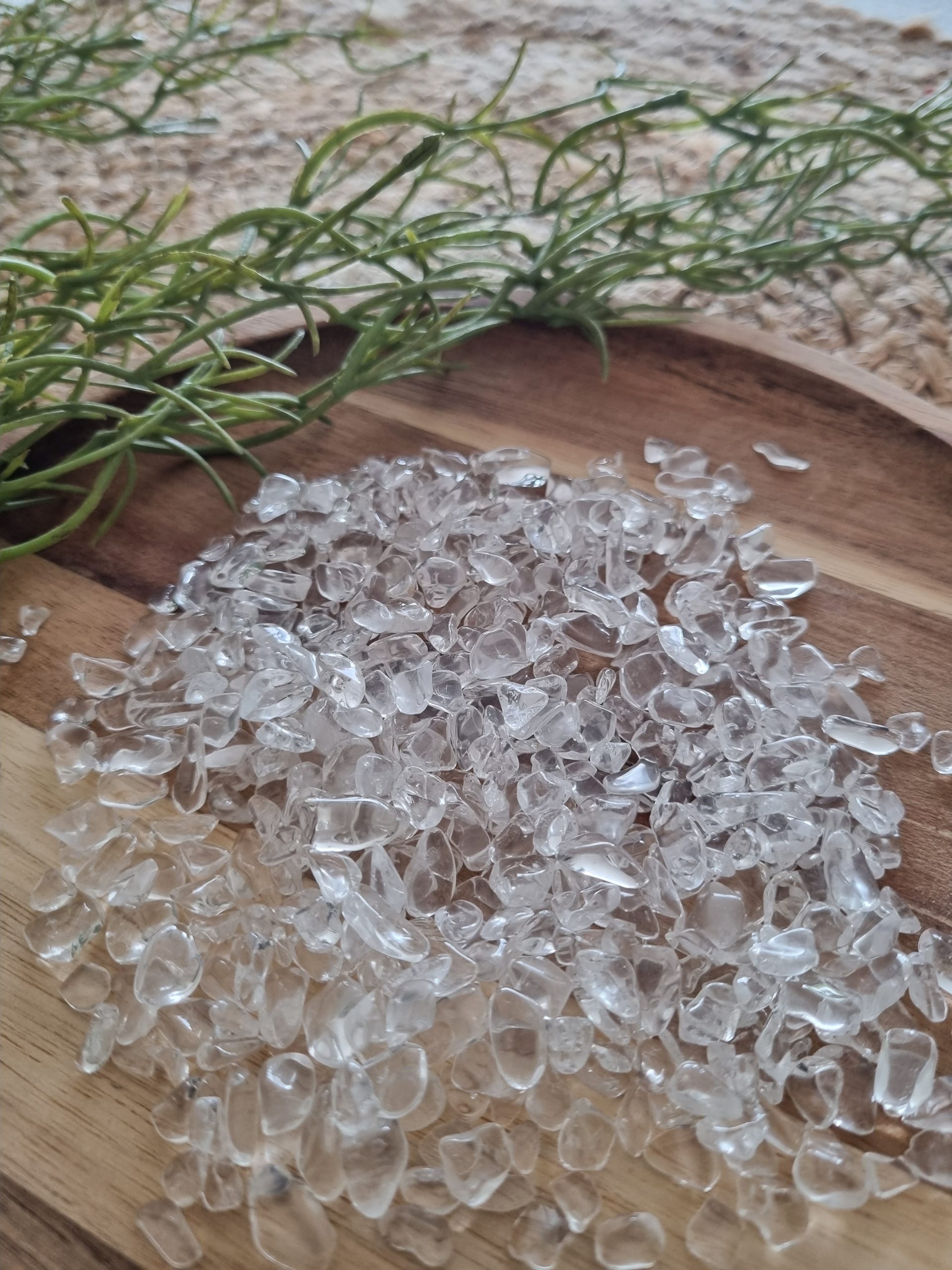 De volgende dag leg je je mineralen enkele uren op de bergkristal steentjes. Bergkristal staat bekend als versterker en energiebooster, en geeft je mineralen een frisse, positieve lading zodat ze weer vol energie functioneren.
