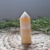 Deze calciet punt heeft een hoogte van 6 cm en een gewicht van 45 gram.