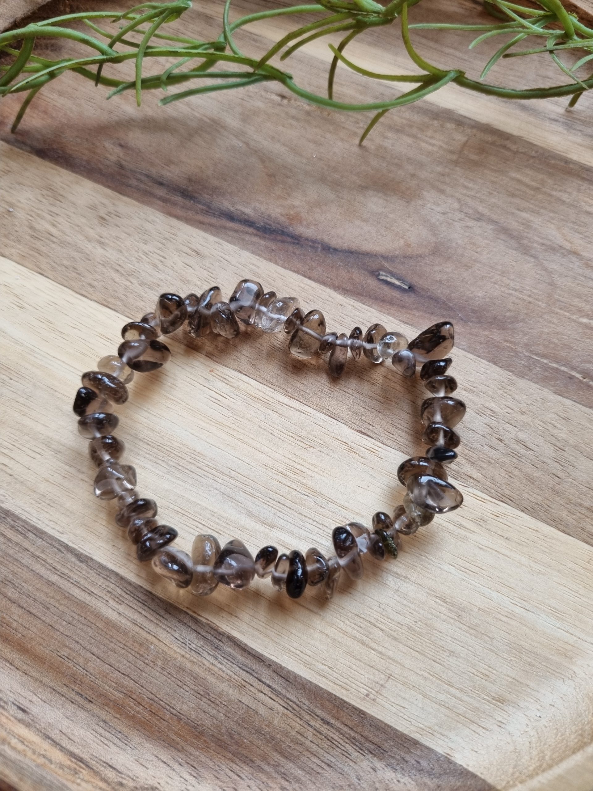Met haar warme, aardse uitstraling voegt onze rookkwarts splitarmband een vleugje mystiek en elegantie toe aan je stijl.
