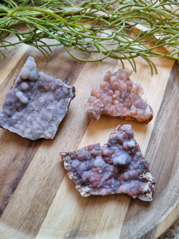 Kies uit diverse ruwe roze chalcedoon stukken en voeg een natuurlijke, rustgevende uitstraling toe aan je ruimte.