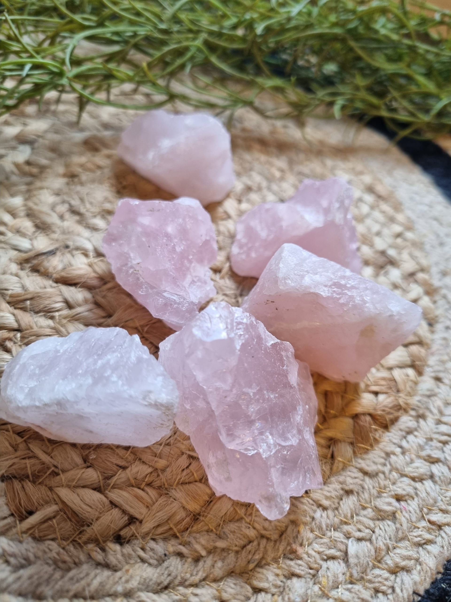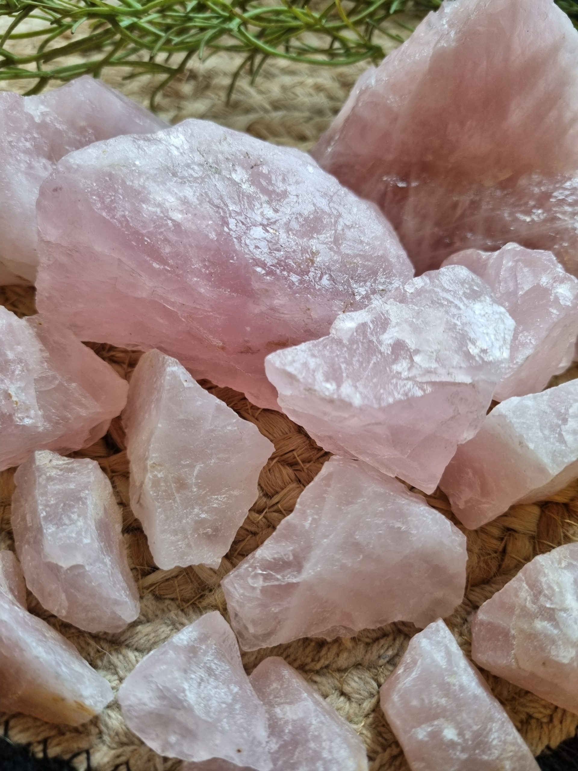 Ruwe rozenkwarts is verkrijgbaar in klein, middelgroot en groot formaat en straalt een liefdevolle, kalmerende energie uit.