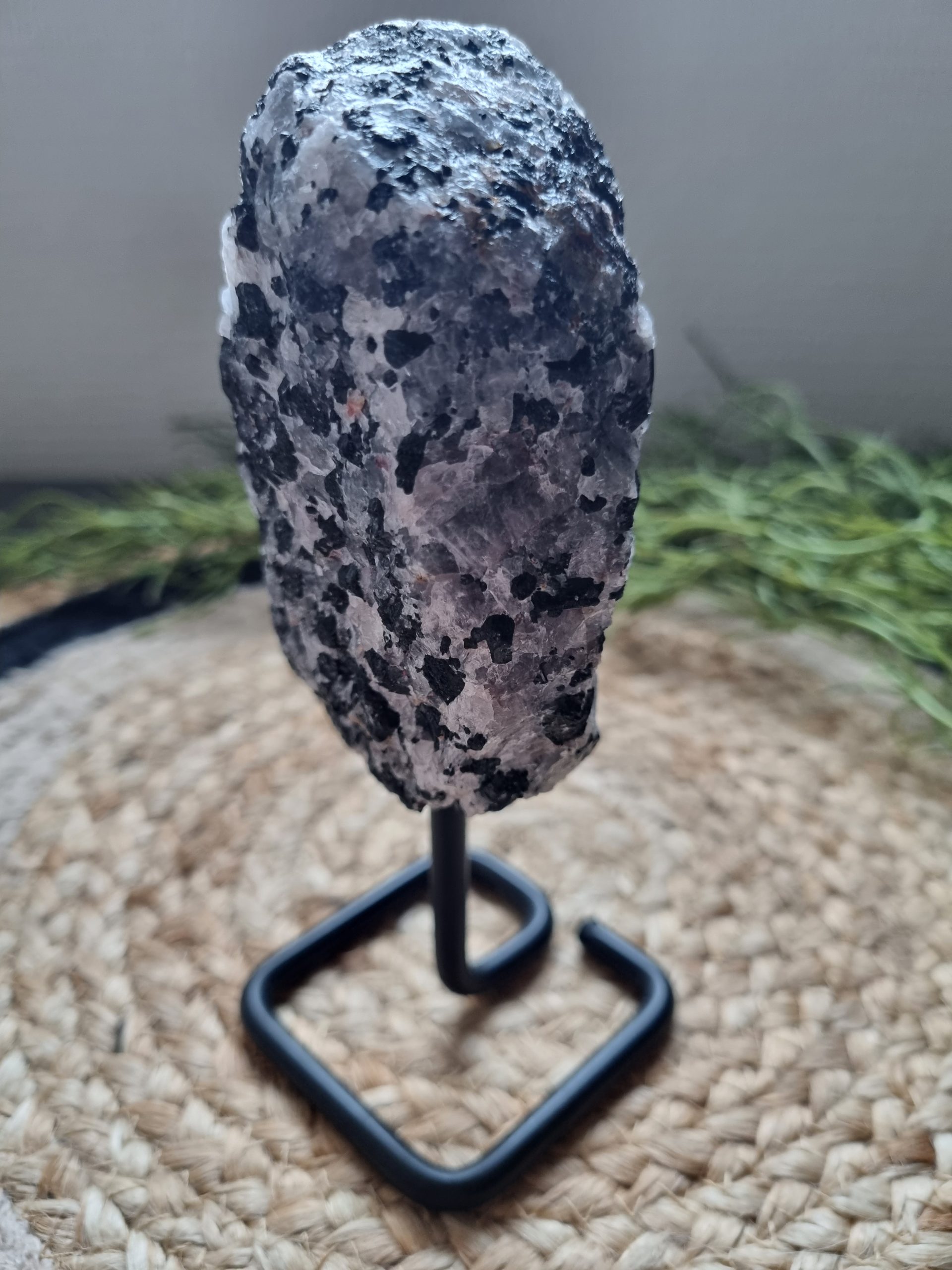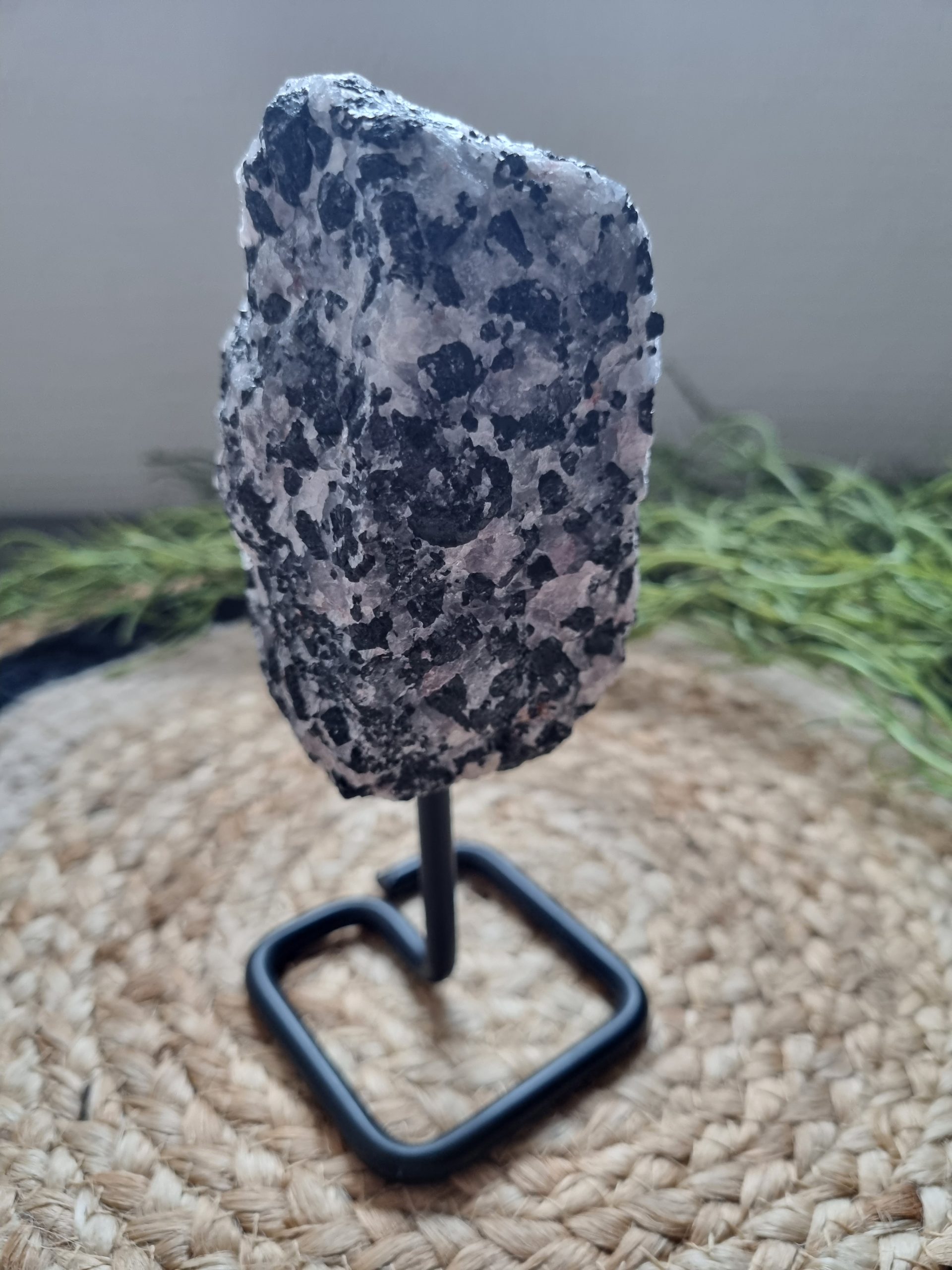 Ontdek de krachtige bescherming van de ruwe toermalijnkwarts op standaard. Deze unieke combinatie van toermalijn en bergkristal helpt negatieve energie af te weren, te zuiveren en je energieveld krachtig te ondersteunen.